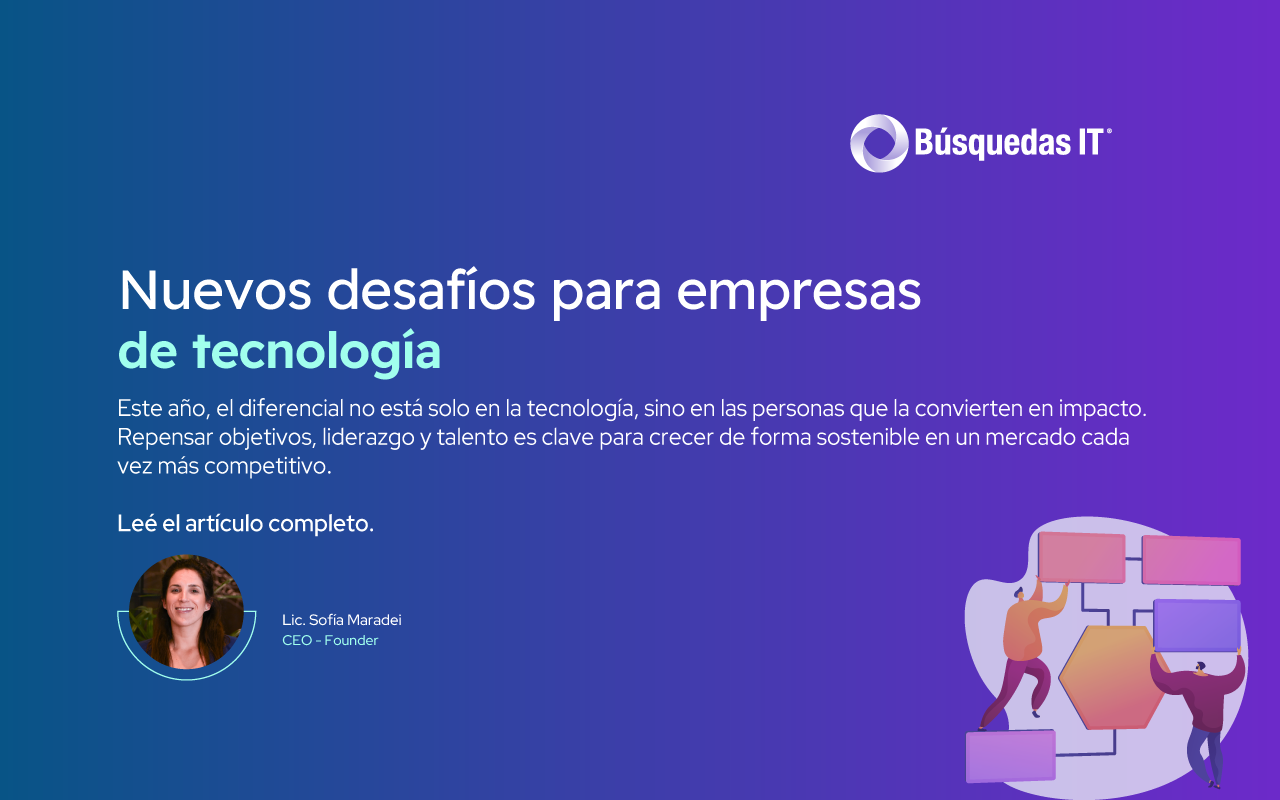 Lic. Sofía MaradeiLicenciada en RRHH (UBA) y HR Agile Leadership Certified por Scrum Manager®. Co - lidera el equipo de Búsquedas IT. Es Referente de nuestro Programa de Colaboración con Organizaciones Educativas del Sector IT.